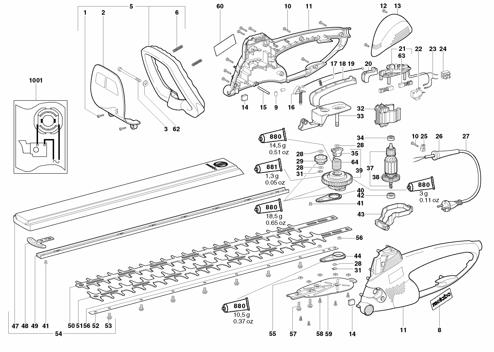 Zeichnung 1 Sollten Sie Fragen zu einem Ersatzteil von Metabo HS 8475 S Heckenschere 608475000 haben, können Sie uns gerne eine E-Mail (mit einem Foto vom Typenschild Ihres Gerätes) schreiben oder eine Ersatzteilanfrage stellen.