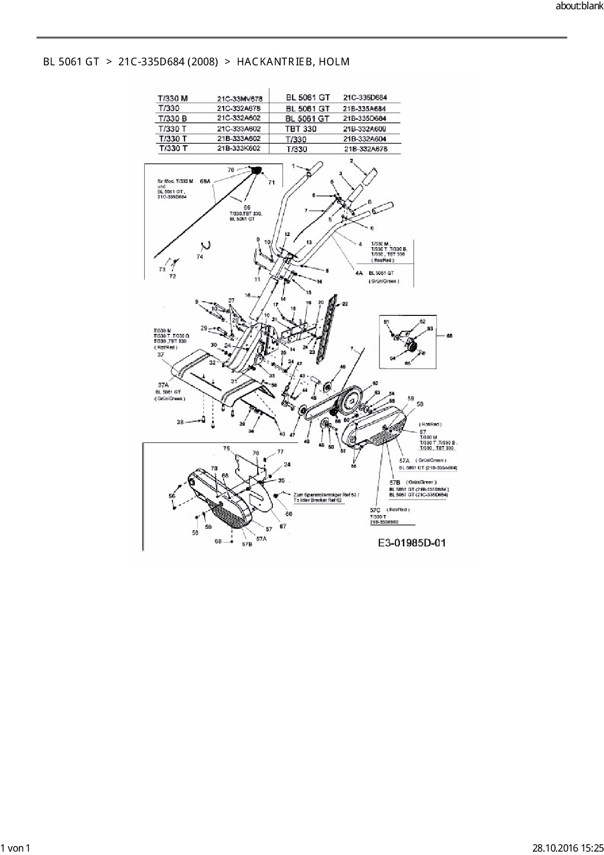 Zeichnung für Bolens Motorhacke BL 5061 GT mit der Geräte-Artikelnr. 21C-335D684 ab Baujahr 2008: