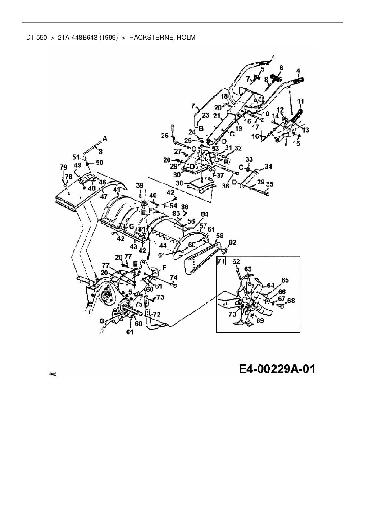 Ersatzteile für Motorhacke Yard-Man DT 550 aus der Zeichnung Hacksterne, Holm:
