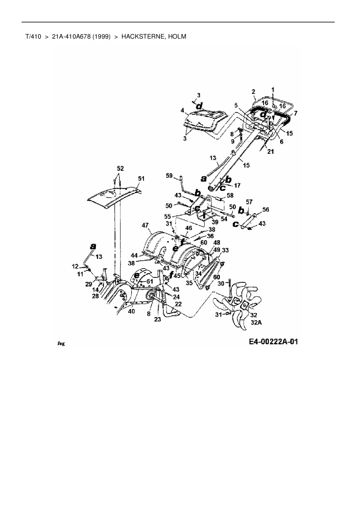 Ersatzteile für Motorhacke MTD T/410 aus der Zeichnung Hacksterne, Holm: