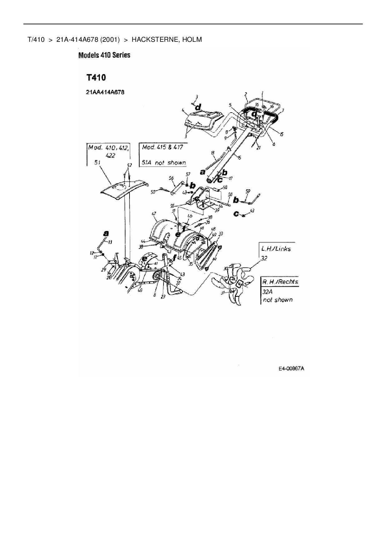 Ersatzteile für Motorhacke MTD T/410 aus der Zeichnung Hacksterne, Holm: