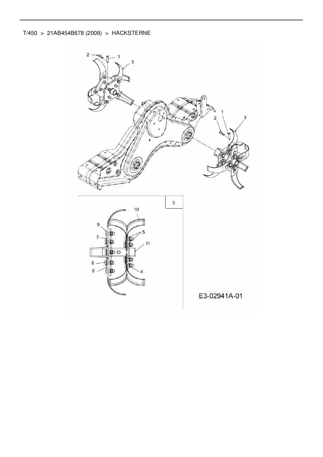 Ersatzteile für Motorhacke MTD T/450 aus der Zeichnung Hacksterne: