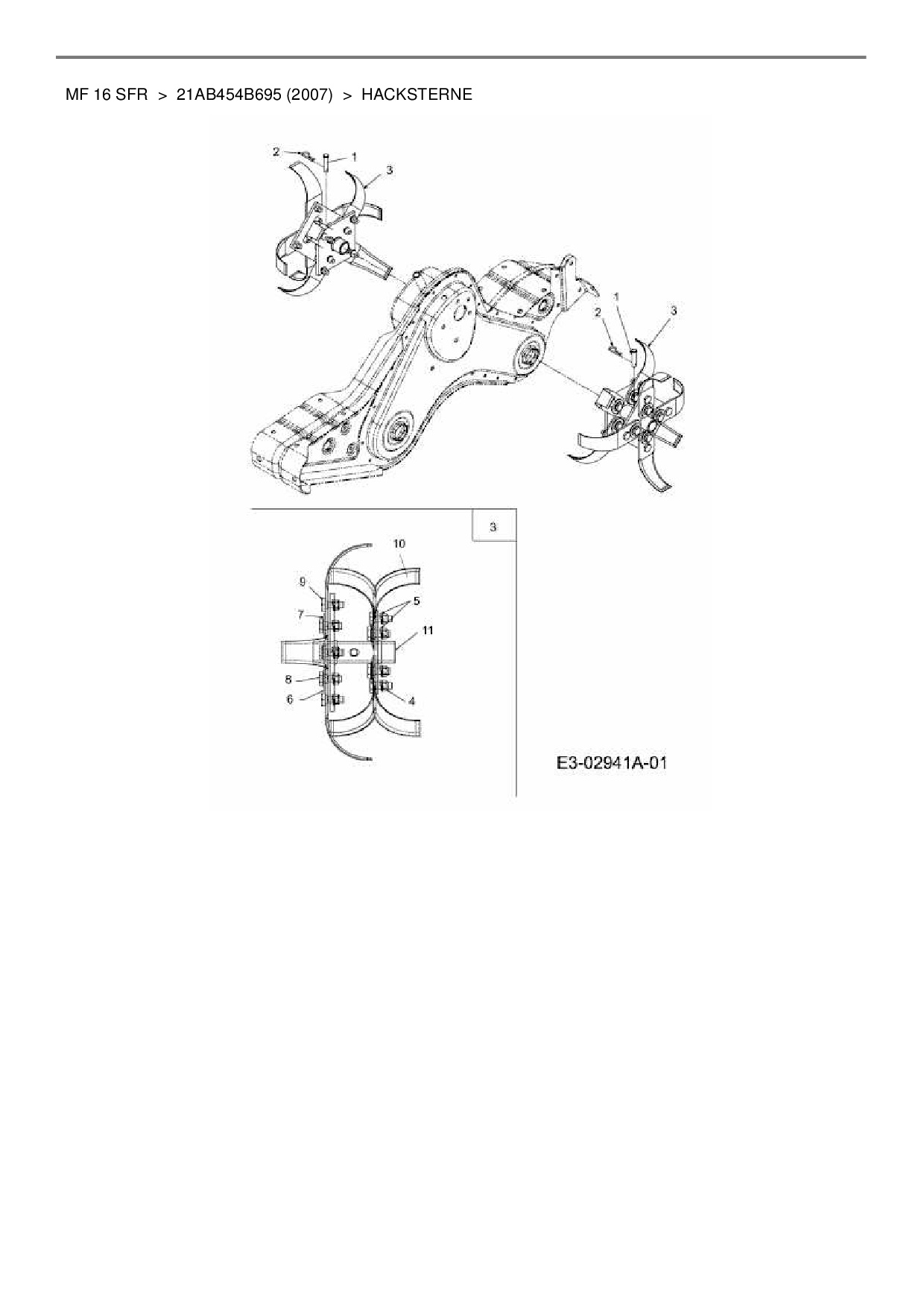 Ersatzteile für Motorhacke Massey Ferguson MF 16 SFR aus der Zeichnung Hacksterne: