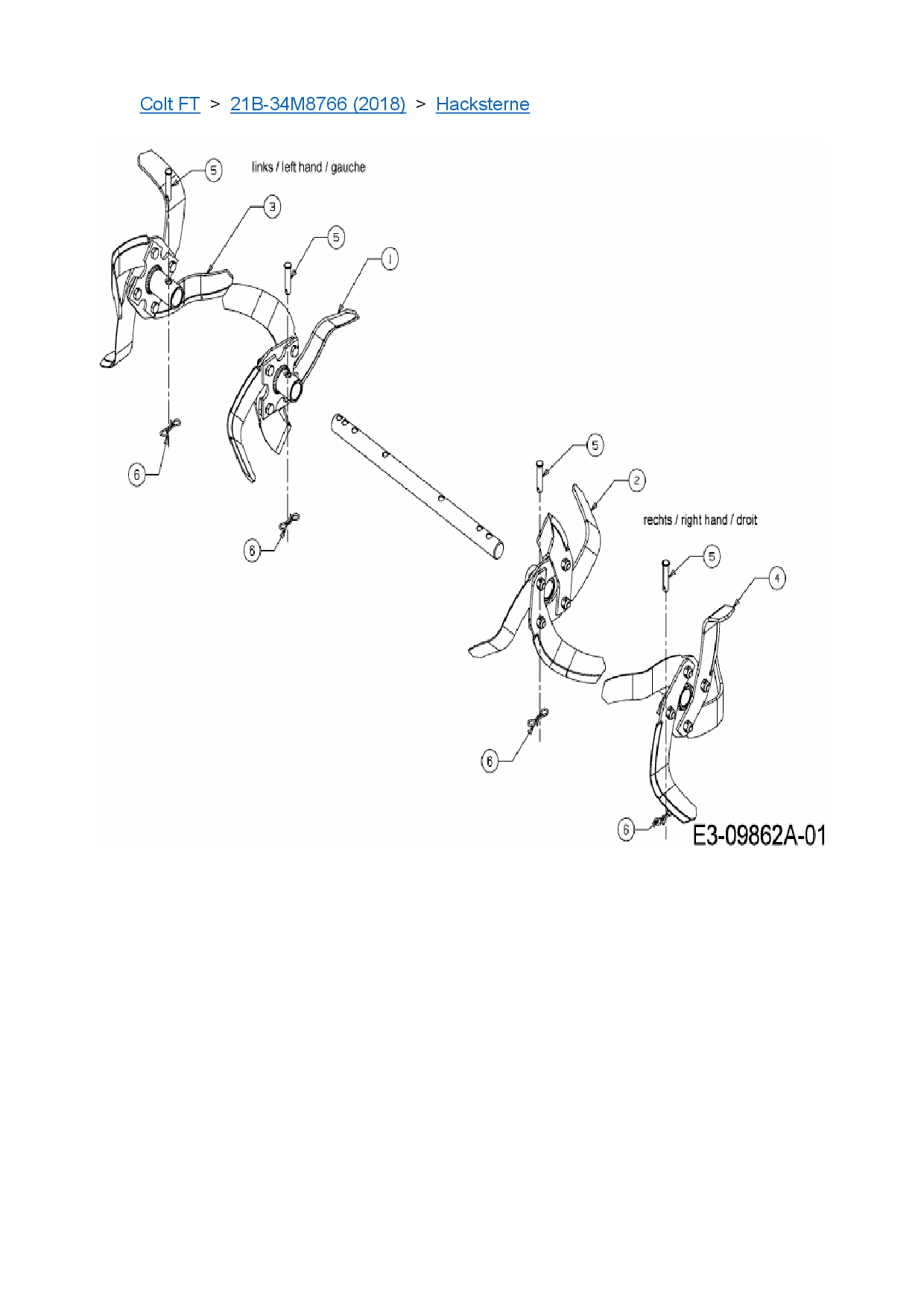 Ersatzteile für Motorhacke Troy-Bilt Colt FT aus der Zeichnung Hacksterne: