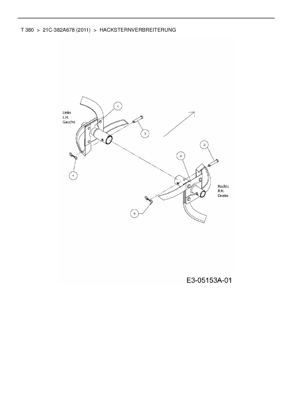 Ersatzteile für Motorhacke MTD T 380 aus der Zeichnung Hacksternverbreiterung: