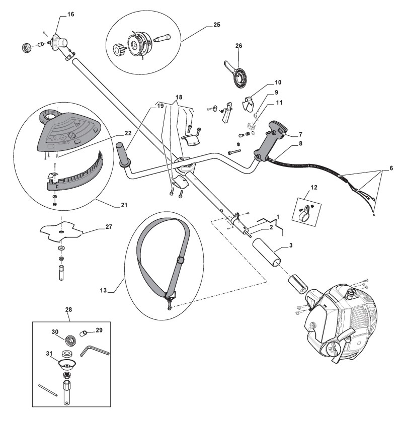 Zeichnungen von Alpina Rasentrimmer/Freischneider TB 32 D mit Geräte Nr. 281121000/09 ab Baujahr 2010