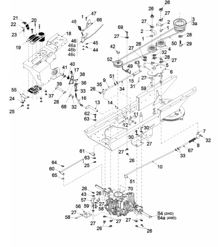 Zeichnung von ECHO-Motorgeräte Rasentraktoren X-Serie X-Serie Bj. 2011 Handbremse, Antrieb: