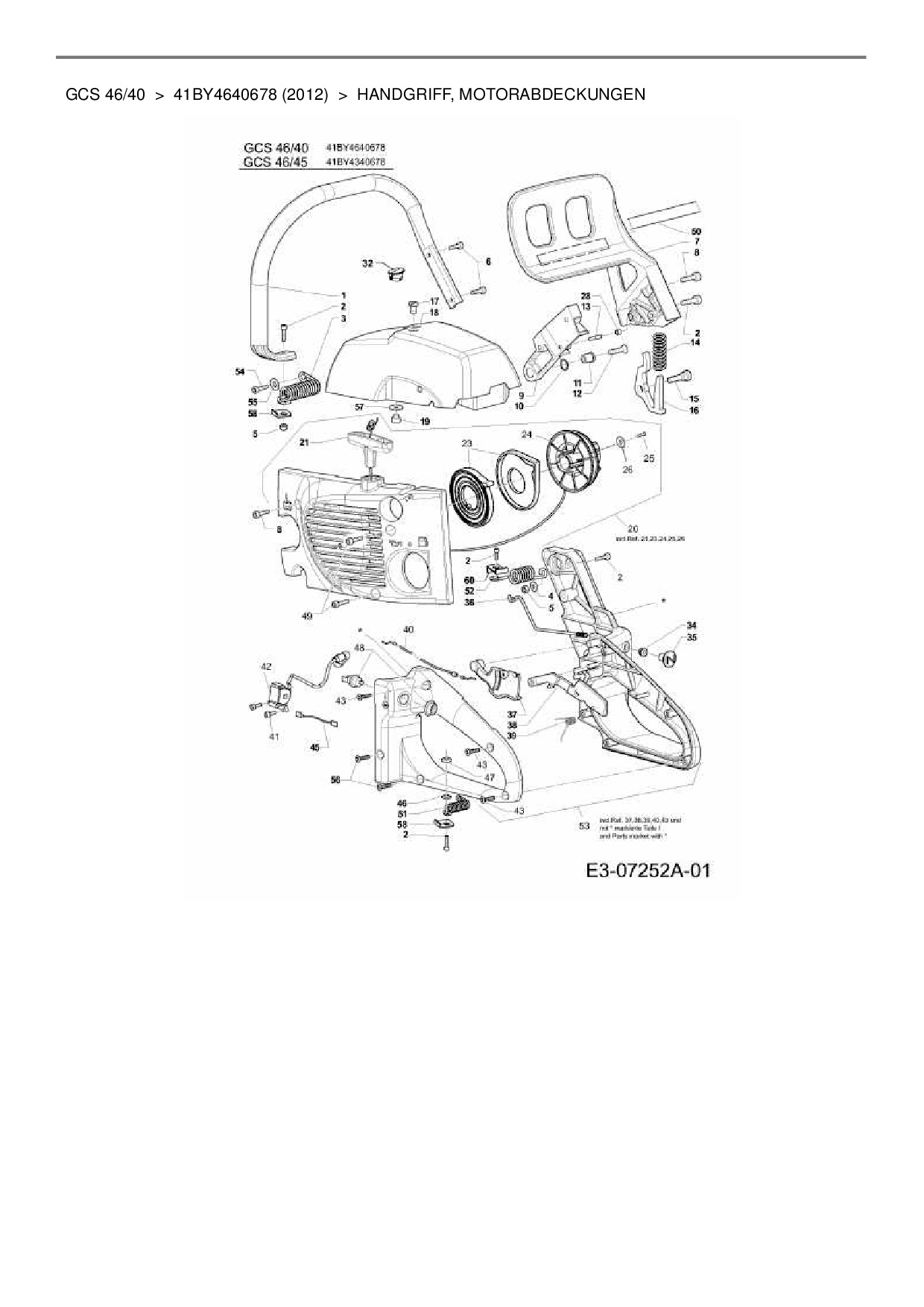 Ersatzteile für Motorkettensäge MTD GCS 46/40 aus der Zeichnung Handgriff, Motorabdeckungen:
