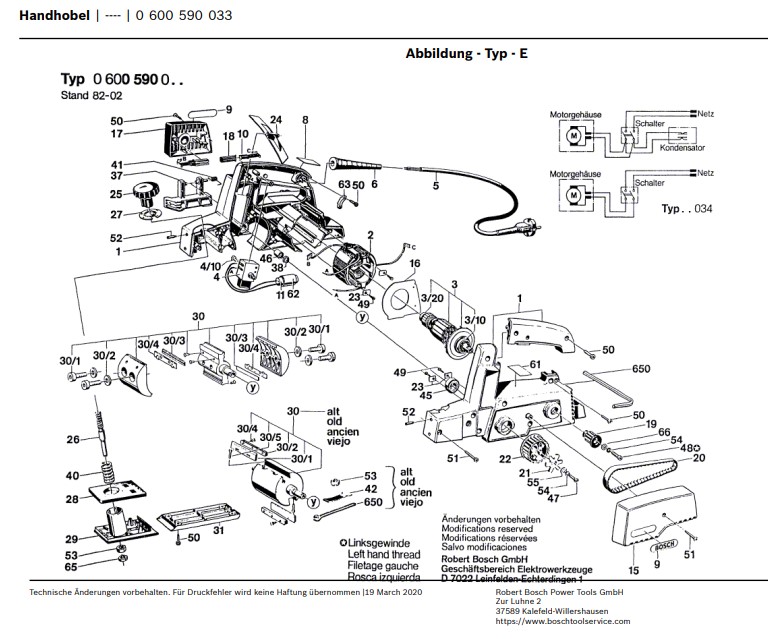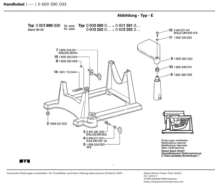 Zeichnung Bosch Handhobel 0 600 590 033: