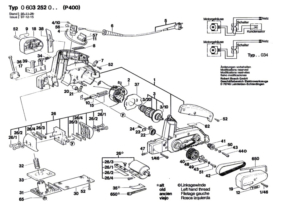 Zeichnung Bosch Handhobel 0 603 252 003: