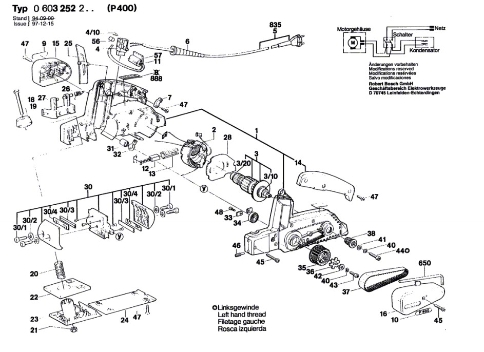 Zeichnung Bosch Handhobel P 400 0 603 252 233: