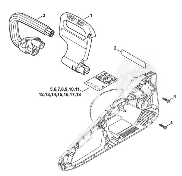 Hier finden Sie alle Ersatzteile von Stihl Elektro-Motorsägen MSE 190 C-Q der Zeichnungsgruppe Handschutz, Griffrohr: