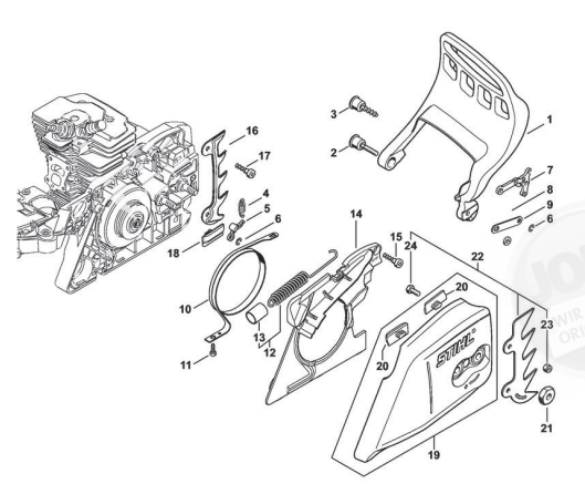 Hier finden Sie alle Ersatzteile von Stihl Benzin-Motorsägen MS 391 der Zeichnungsgruppe Handschutz, Kettenbremse: