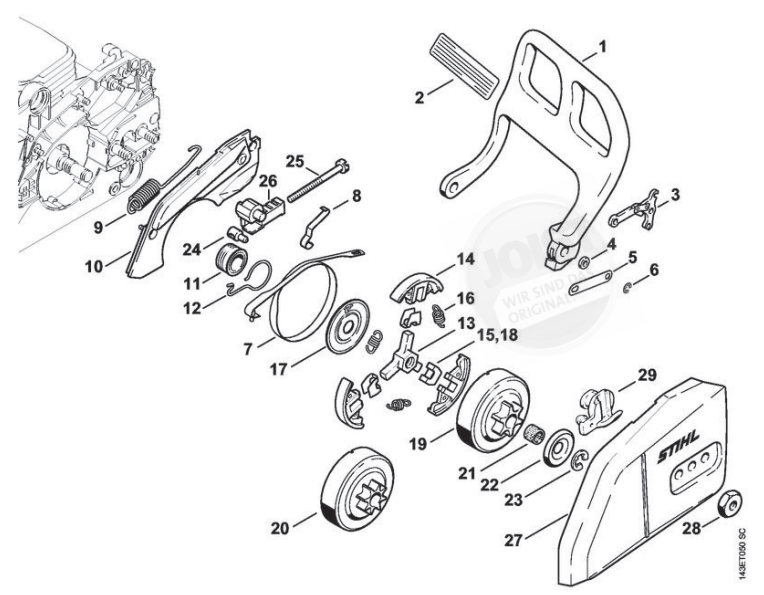 Hier finden Sie alle Ersatzteile von Stihl Benzin-Motorsägen 017 der Zeichnungsgruppe Handschutz, Kettenbremse: