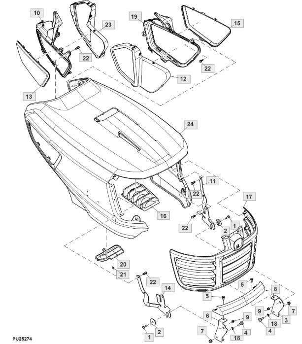 Ersatzteile für Rasentraktor X948 (PC13378) von John Deere aus der Zeichnung Haube und Grill - ST905574: