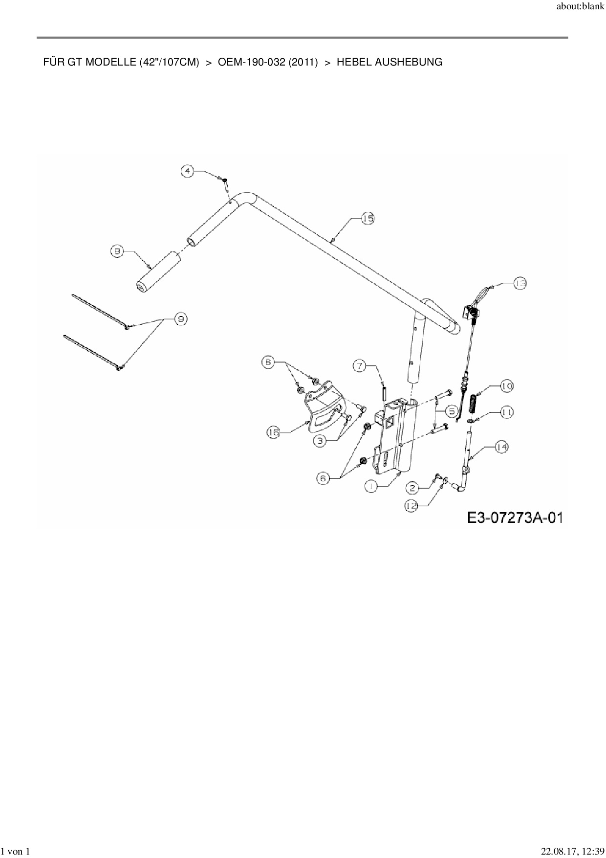 Download Ersatzteil-Zeichnung Zubehör Garten- und Rasentraktoren für GT Modelle (42"/107cm) Zeichnung Hebel Aushebung (PDF-Format)