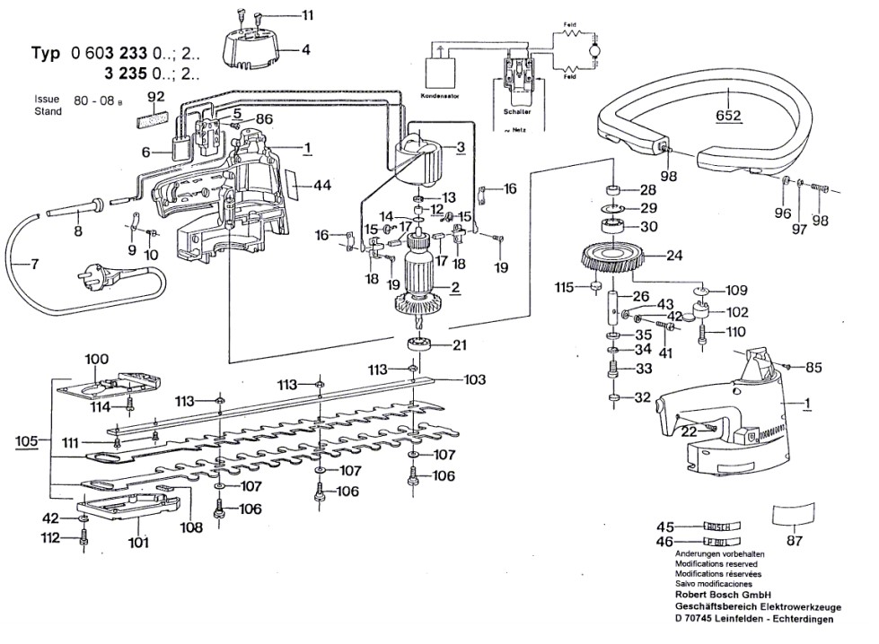 Hier finden Sie alle Ersatzteile für Bosch Heckenschere 0 603 233 033: