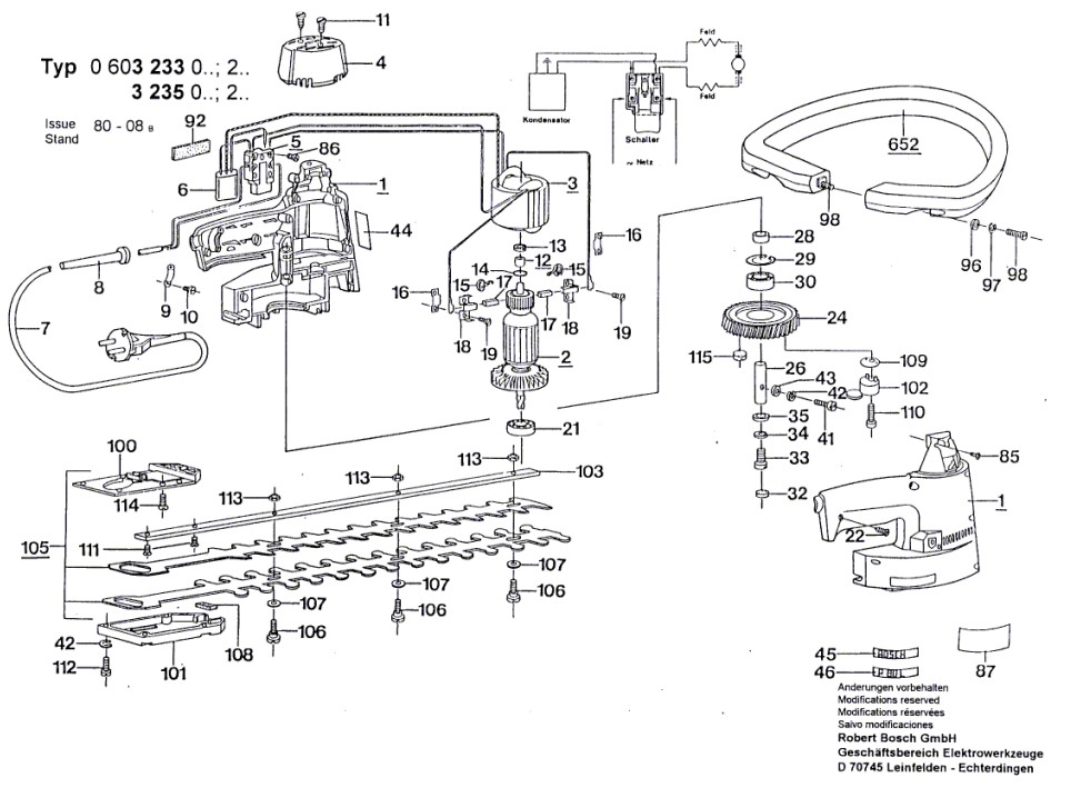 Hier finden Sie alle Ersatzteile für Bosch Heckenschere 0 603 235 003: