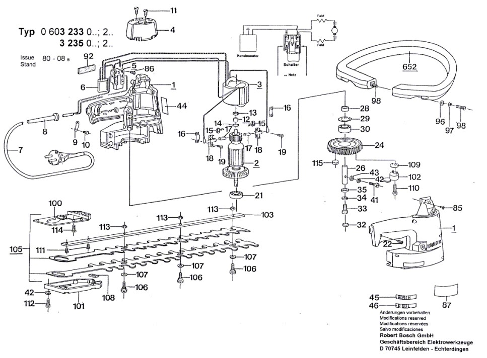 Hier finden Sie alle Ersatzteile für Bosch Heckenschere 0 603 235 303:
