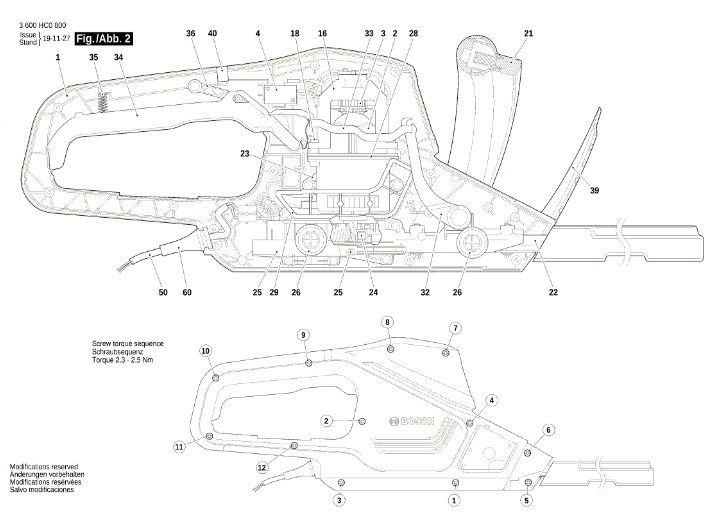 Folgende Ersatzteile für den Bosch Heckenschere AdvancedHedgecut 65 mit der Geräte-Artikelnr. 3 600 HC0 802 können Sie hier bestellen: