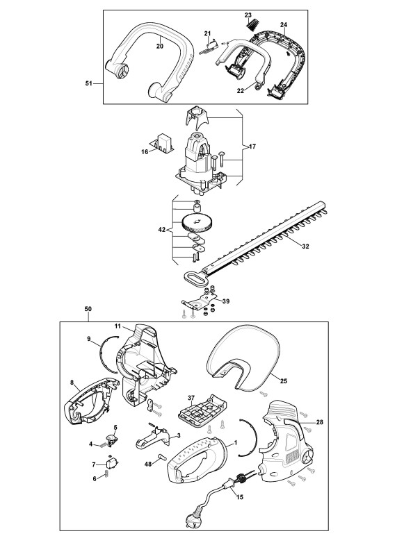 Zeichnungen von Alpina Heckenscheren AHT 500 E mit Geräte Nr. 256050004/A20 ab Baujahr 2020