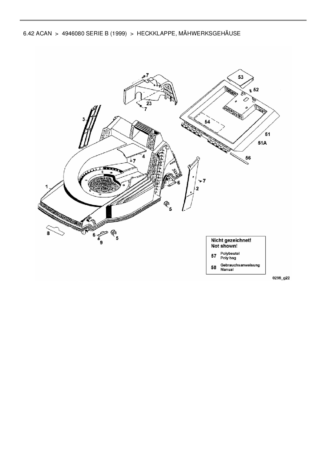Ersatzteile für Akkumäher mit Antrieb Wolf-Garten 6.42 ACAN aus der Zeichnung Heckklappe, Mähwerksgehäuse: