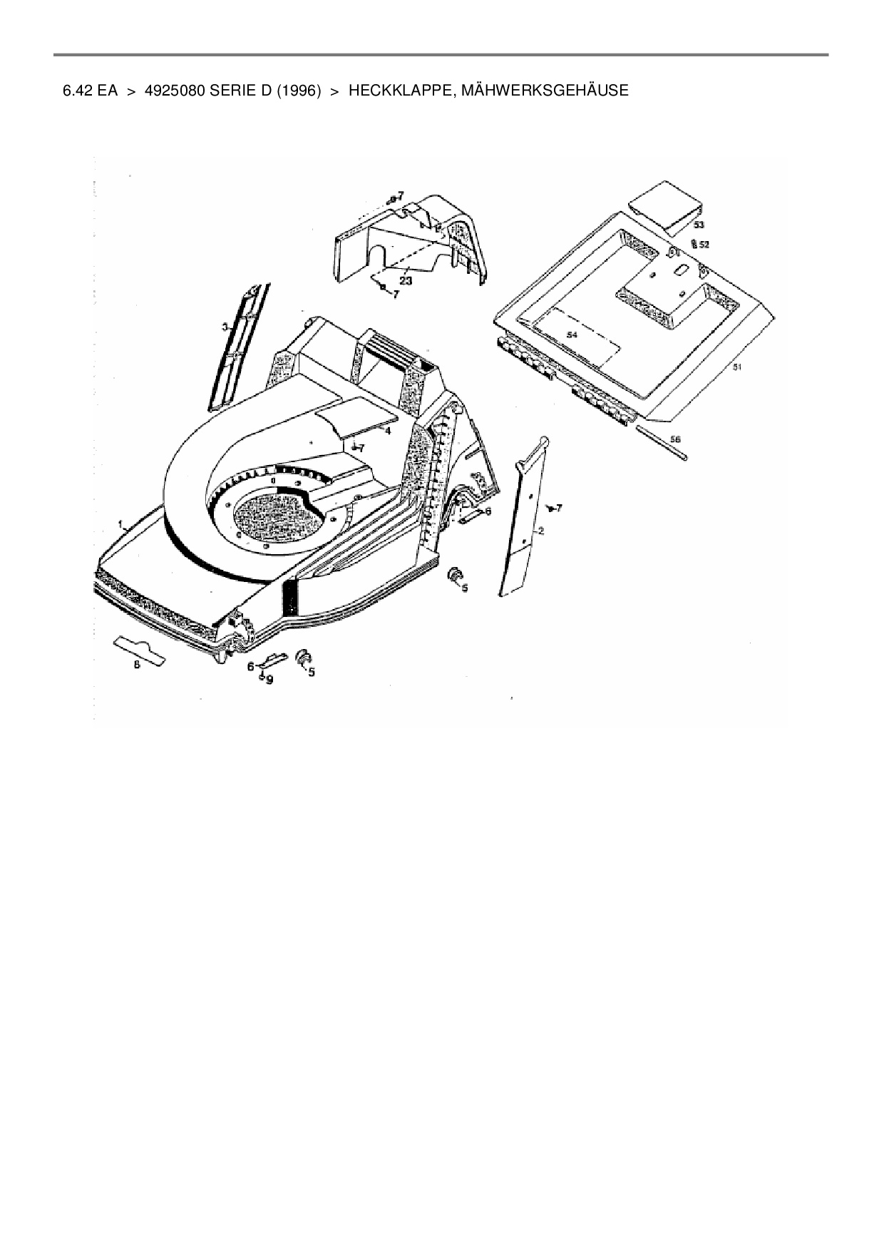 Ersatzteile für Elektromäher mit Antrieb Wolf-Garten 6.42 EA aus der Zeichnung Heckklappe, Mähwerksgehäuse: