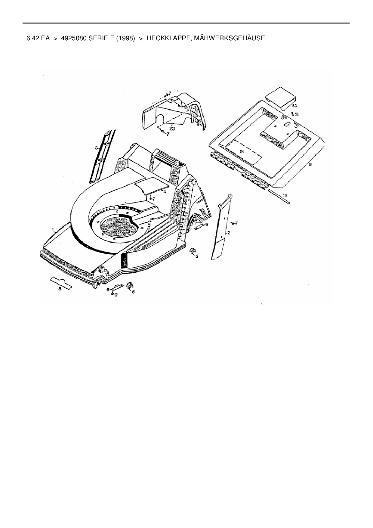 Ersatzteile für Elektromäher mit Antrieb Wolf-Garten 6.42 EA aus der Zeichnung Heckklappe, Mähwerksgehäuse: