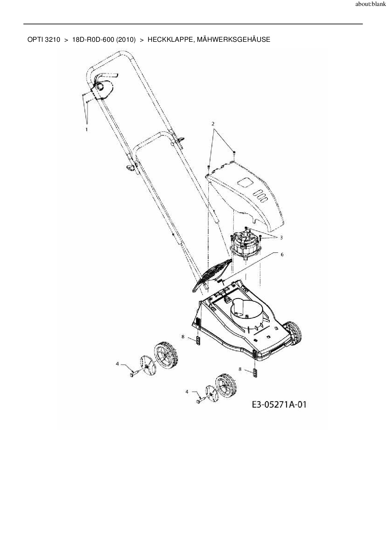 Ersatzteile für Elektromäher MTD Opti 3210 aus der Zeichnung Heckklappe, Mähwerksgehäuse: