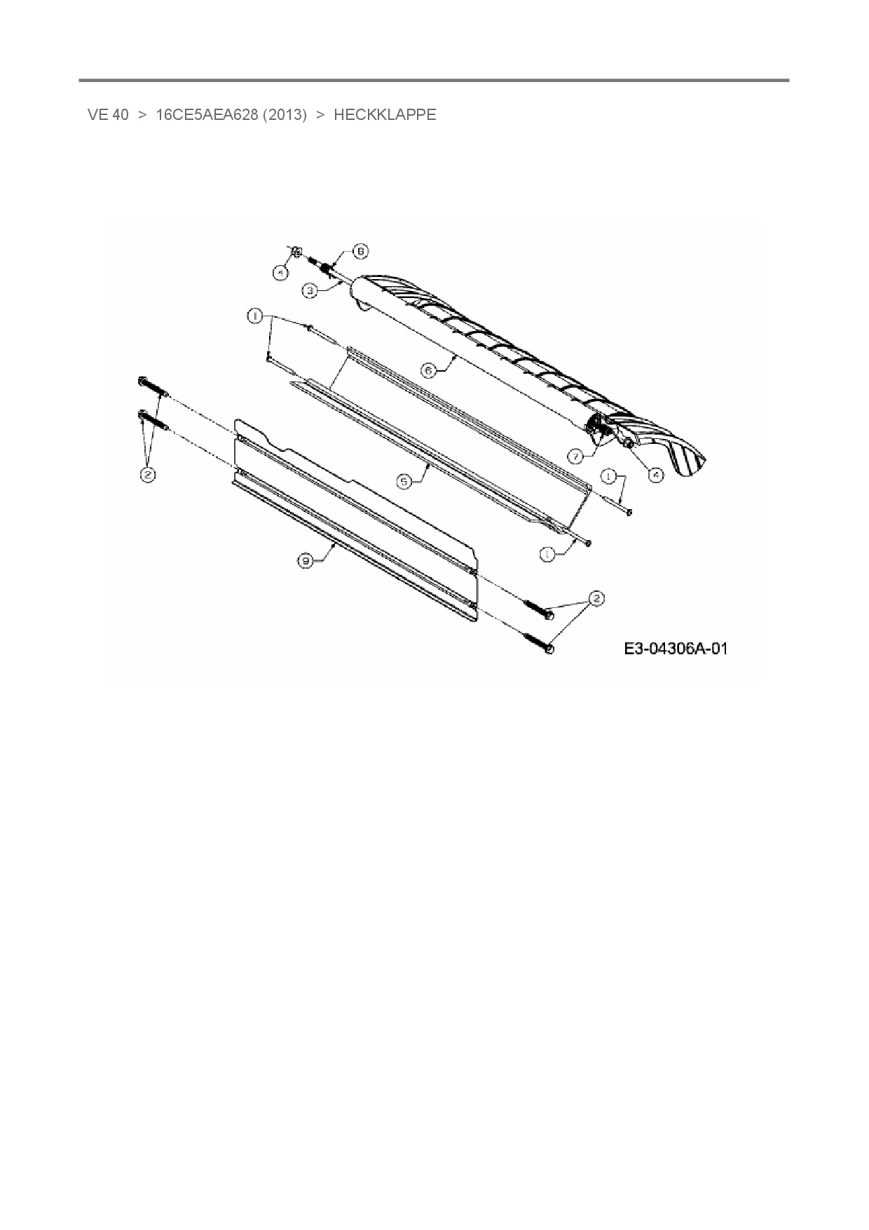 Ersatzteile für Elektrovertikutierer Raiffeisen-Markt VE 40 aus der Zeichnung Heckklappe: