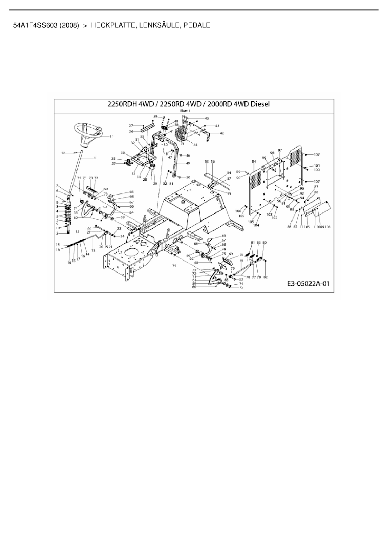 Ersatzteile für Kompakttraktor Cub Cadet CC 2000 RD 4 WD aus der Zeichnung Heckplatte, Lenksäule, Pedale: