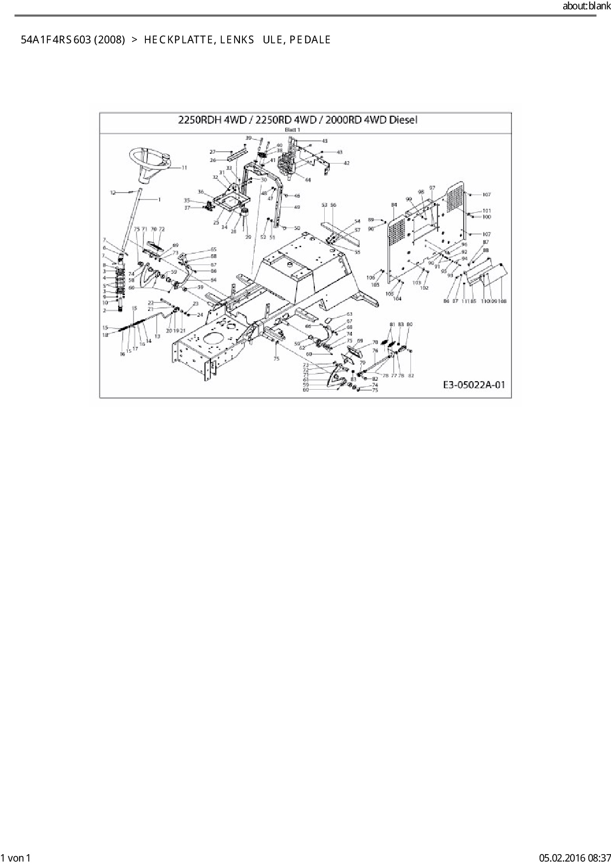 Ersatzteile für Kompakttraktor Cub Cadet CC 2250 RD 4 WD aus der Zeichnung Heckplatte, Lenksäule, Pedale: