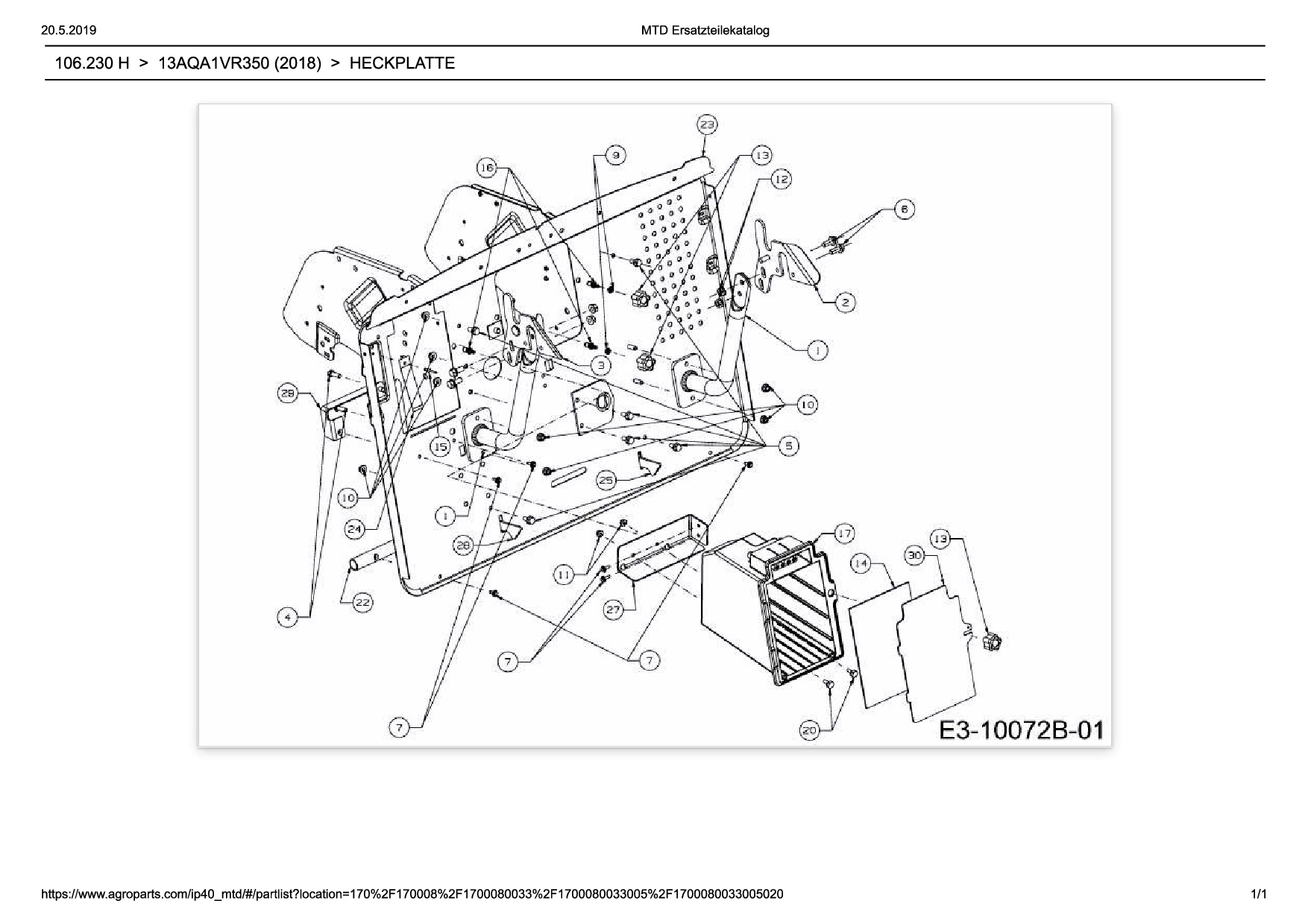 Ersatzteile für Rasentraktor Wolf-Garten Expert 106.230 H aus der Zeichnung Heckplatte: