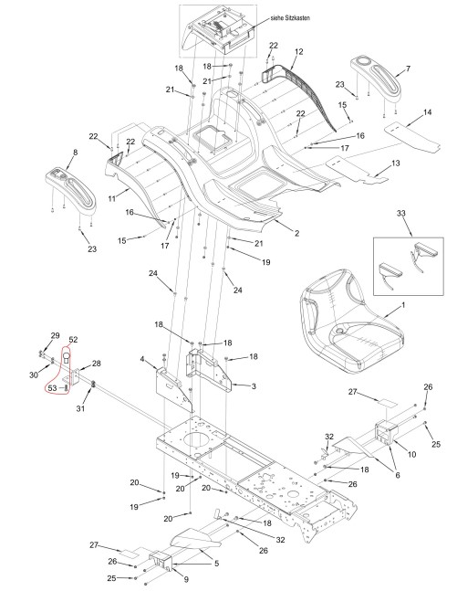 Zeichnung von ECHO-Motorgeräte Rasentraktoren A-Serie A-426KAWA-4WD Bj. 2016 Heckteil, Sitz 4WD: