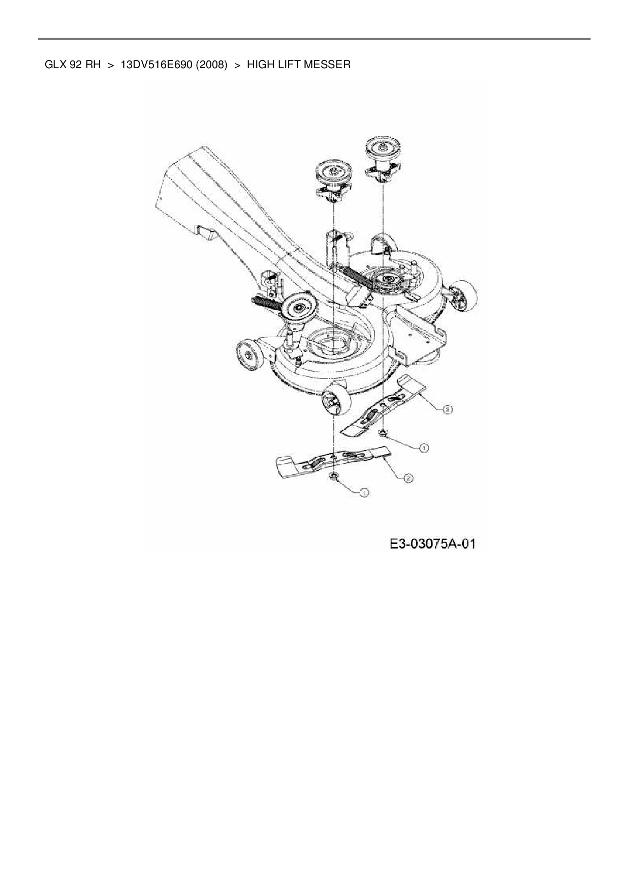 Ersatzteile für Rasentraktor Gutbrod GLX 92 RH aus der Zeichnung High lift Messer: