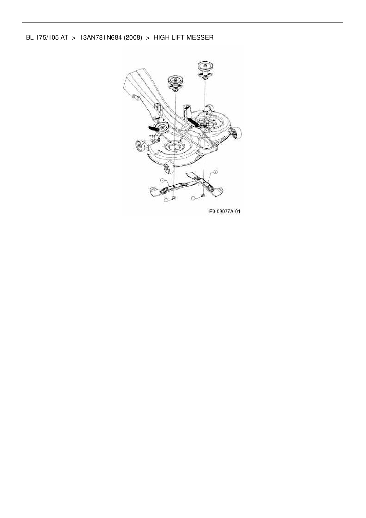 Ersatzteile für Rasentraktor Bolens BL 175/105 AT aus der Zeichnung High lift Messer: