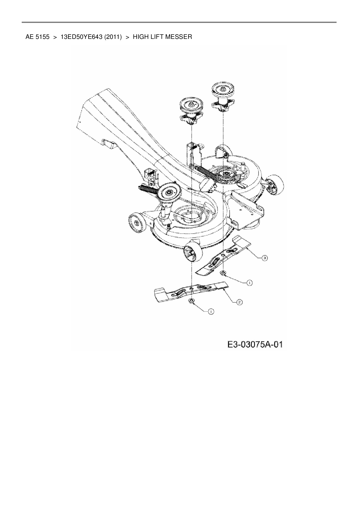 Ersatzteile für Rasentraktor Yard-Man AE 5155 aus der Zeichnung High lift Messer: