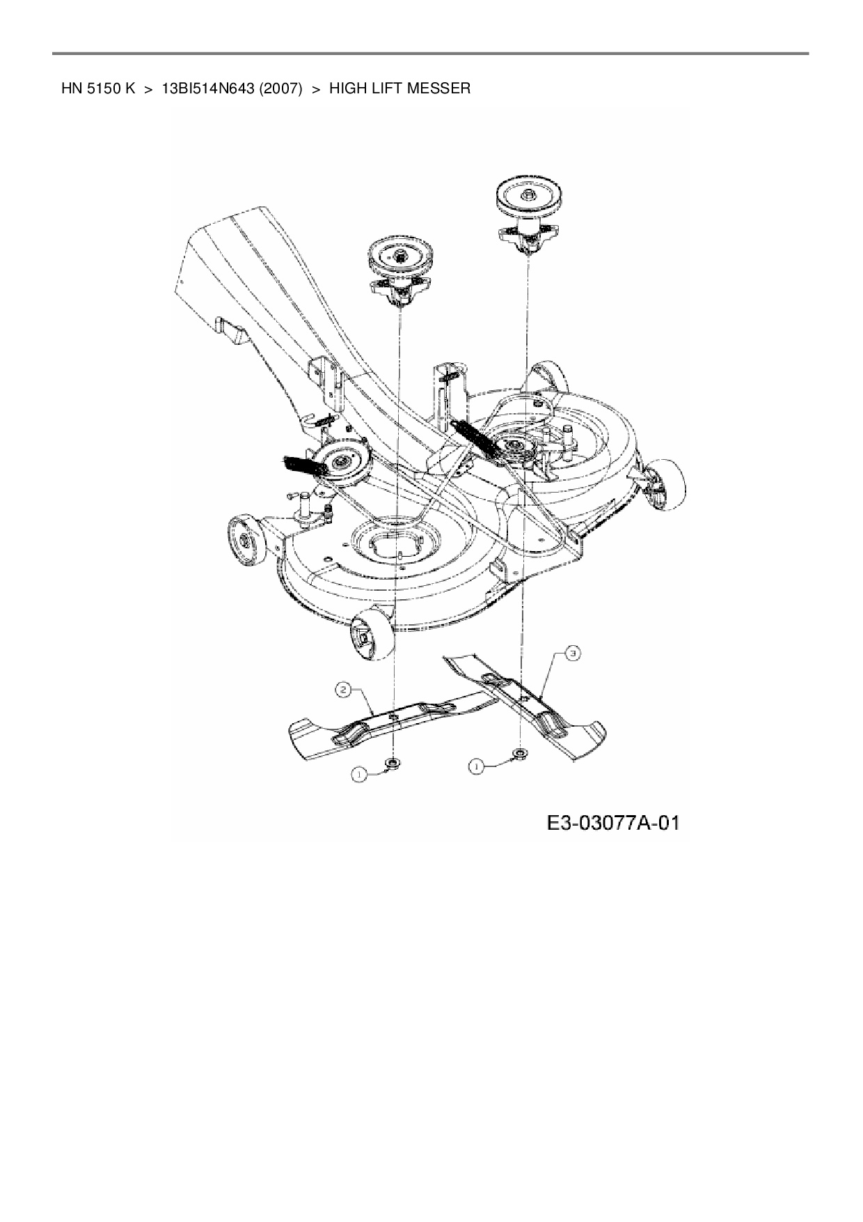 Ersatzteile für Rasentraktor Yard-Man HN 5150 K aus der Zeichnung High lift Messer: