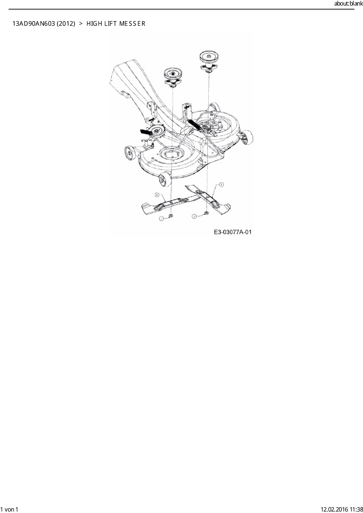 Ersatzteile für Rasentraktor Cub Cadet CC 1018 AN aus der Zeichnung High lift Messer: