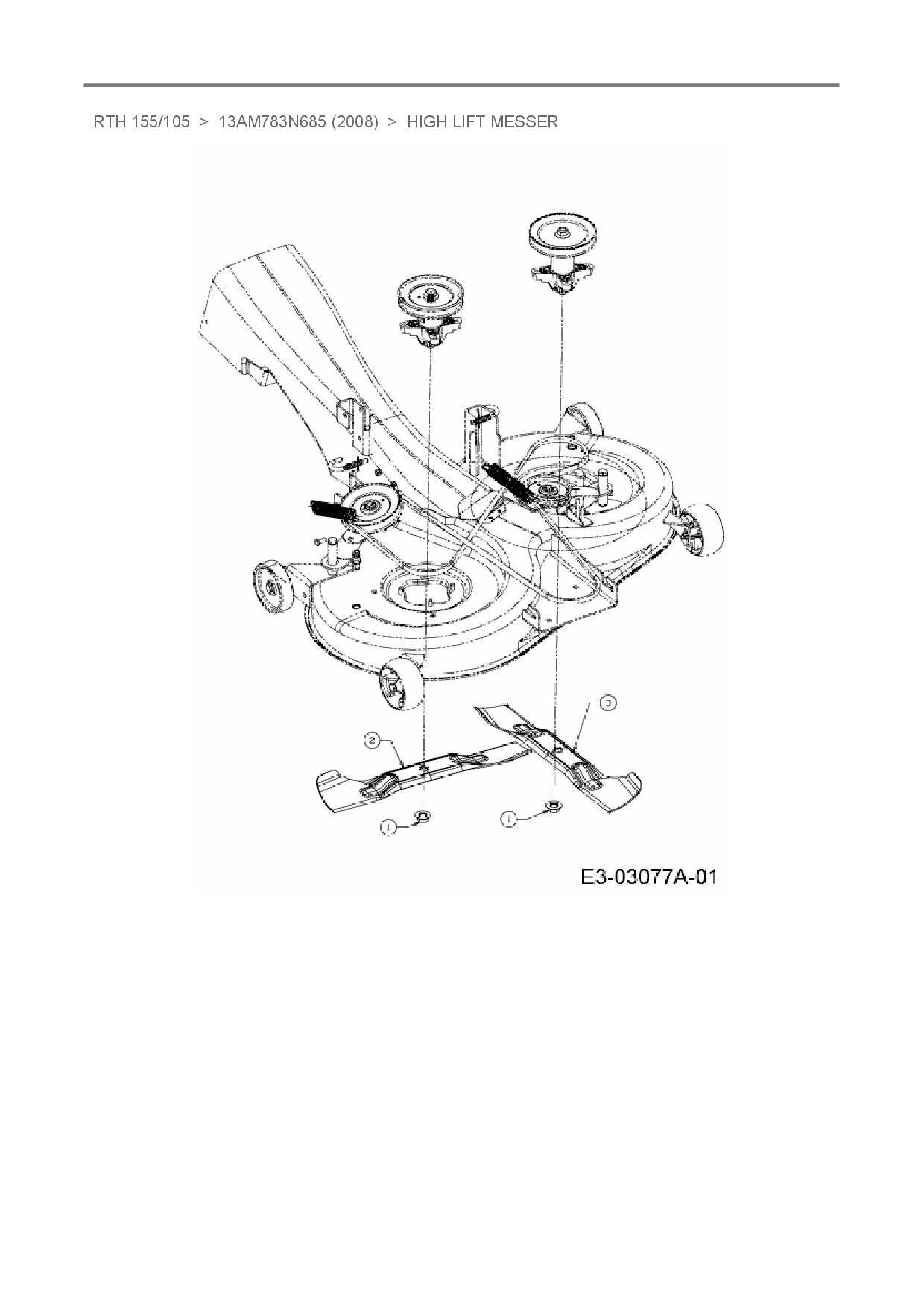 Ersatzteile für Rasentraktor Sunline RTH 155/105 aus der Zeichnung High lift Messer: