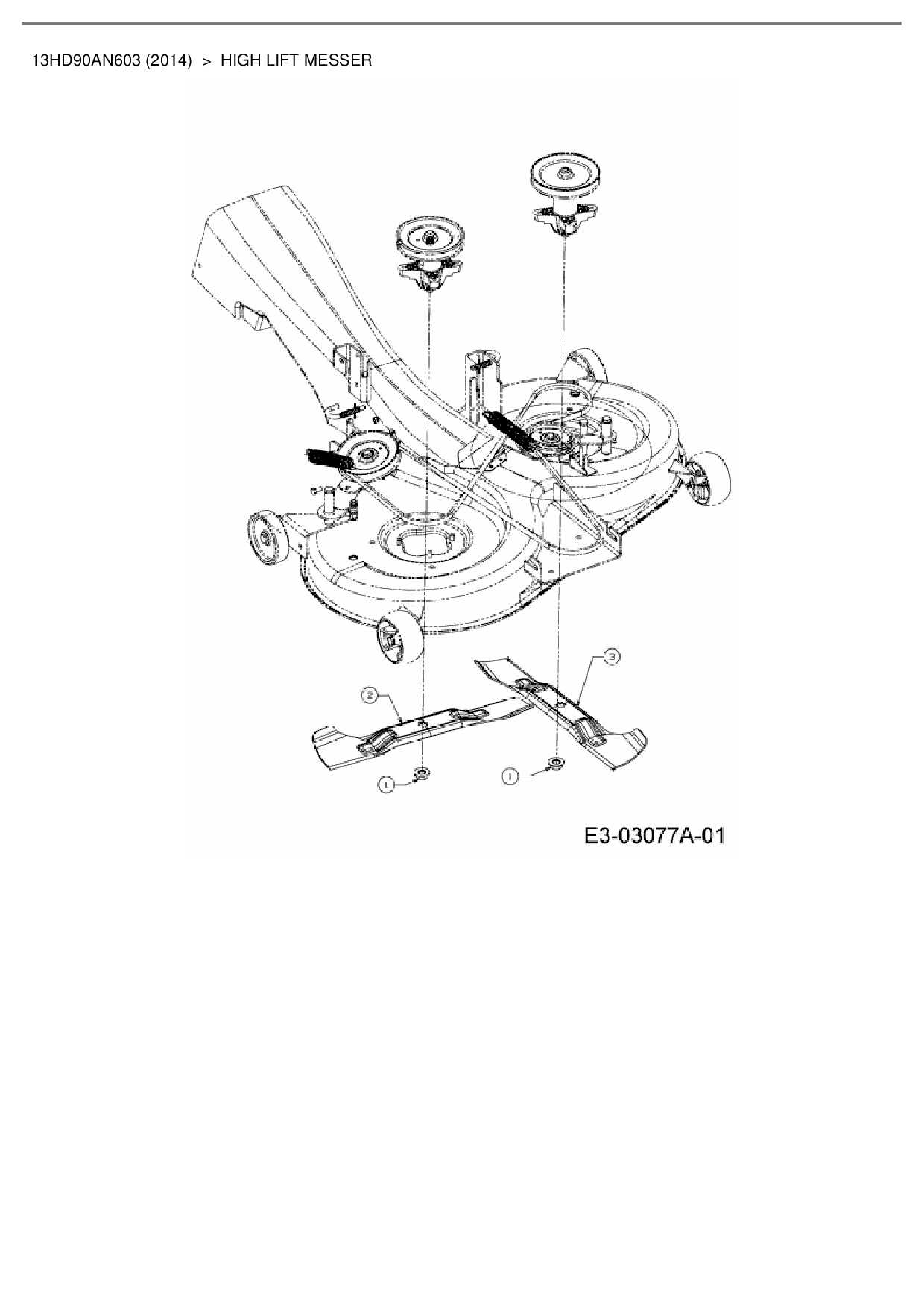 Ersatzteile für Rasentraktor Cub Cadet CC 1018 AN aus der Zeichnung High lift Messer: