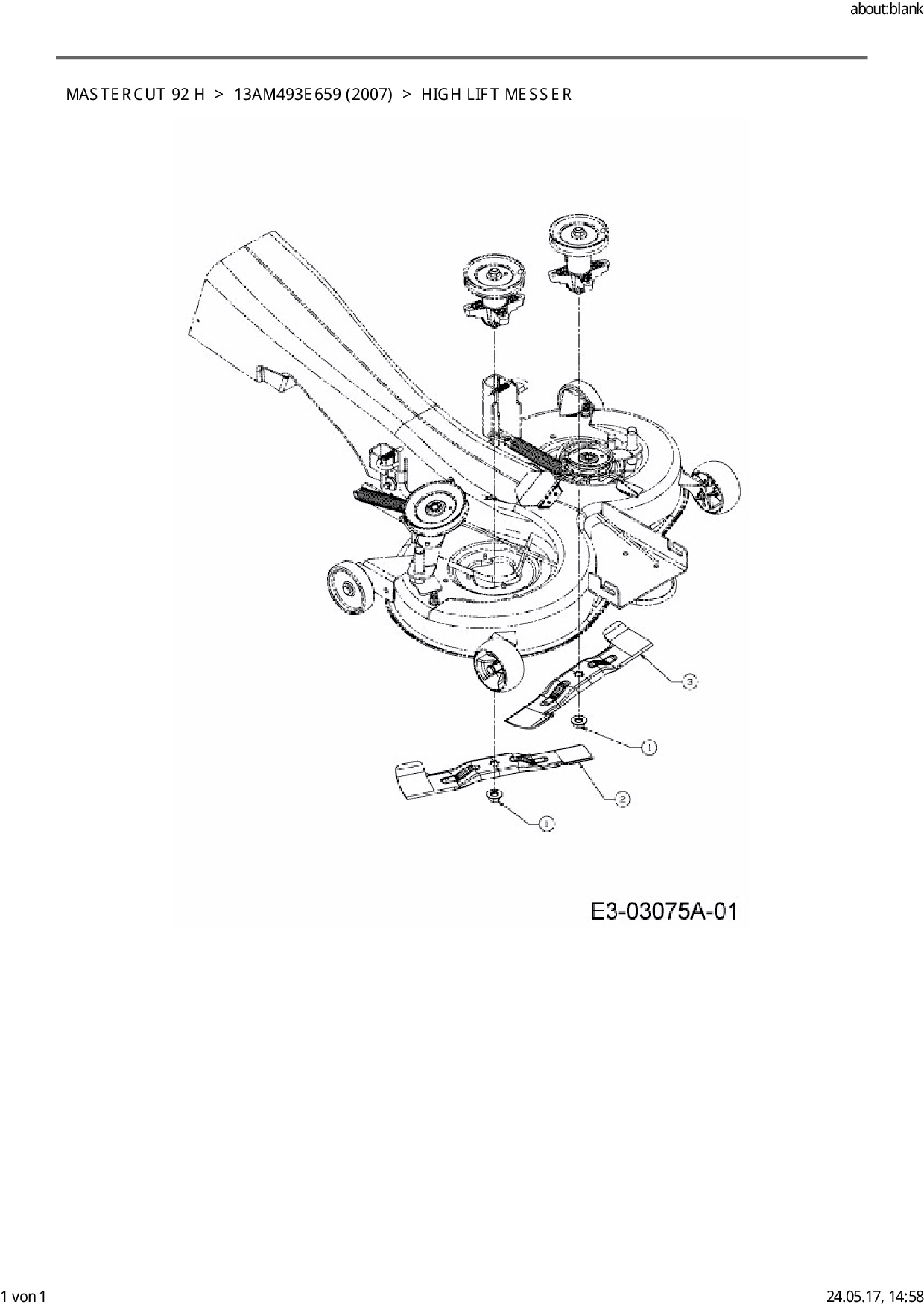 Ersatzteile für Rasentraktor Mastercut Mastercut 92 H aus der Zeichnung High lift Messer: