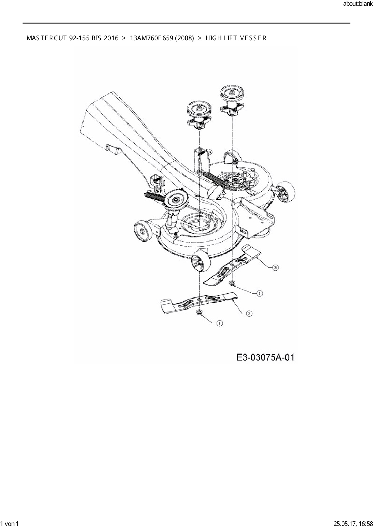 Ersatzteile für Rasentraktor Mastercut Mastercut 92-155 bis 2016 aus der Zeichnung High lift Messer: