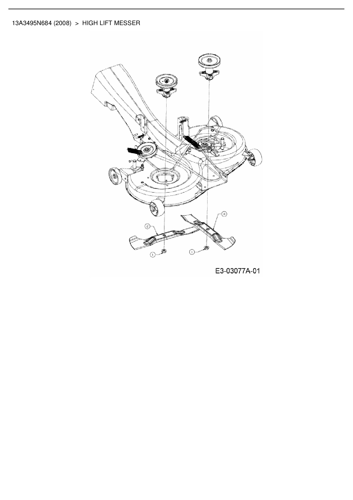 Ersatzteile für Rasentraktor Bolens BL 180/105 H aus der Zeichnung High lift Messer:
