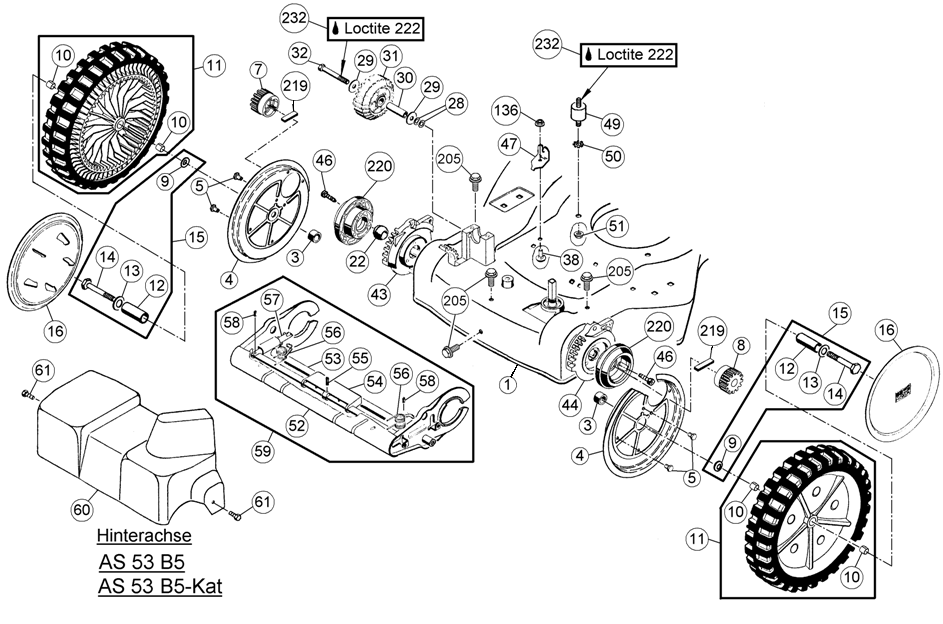 Hier finden Sie alle Ersatzteile von AS-Motor Profi-Rasenmäher AS 53 B5 ab FNr. 008012040001 aus dem Zeichnungsblatt Hinterachse: