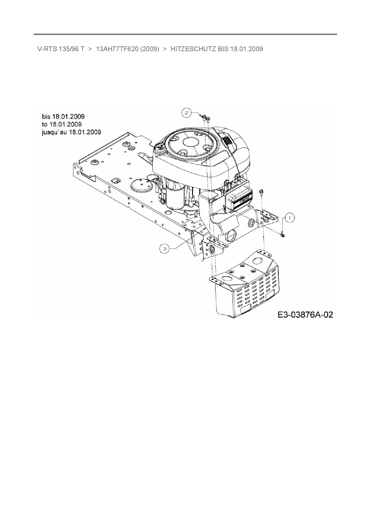 Ersatzteile für Rasentraktor Variolux V-RTS 135/96 T aus der Zeichnung Hitzeschutz bis 18.01.2009: