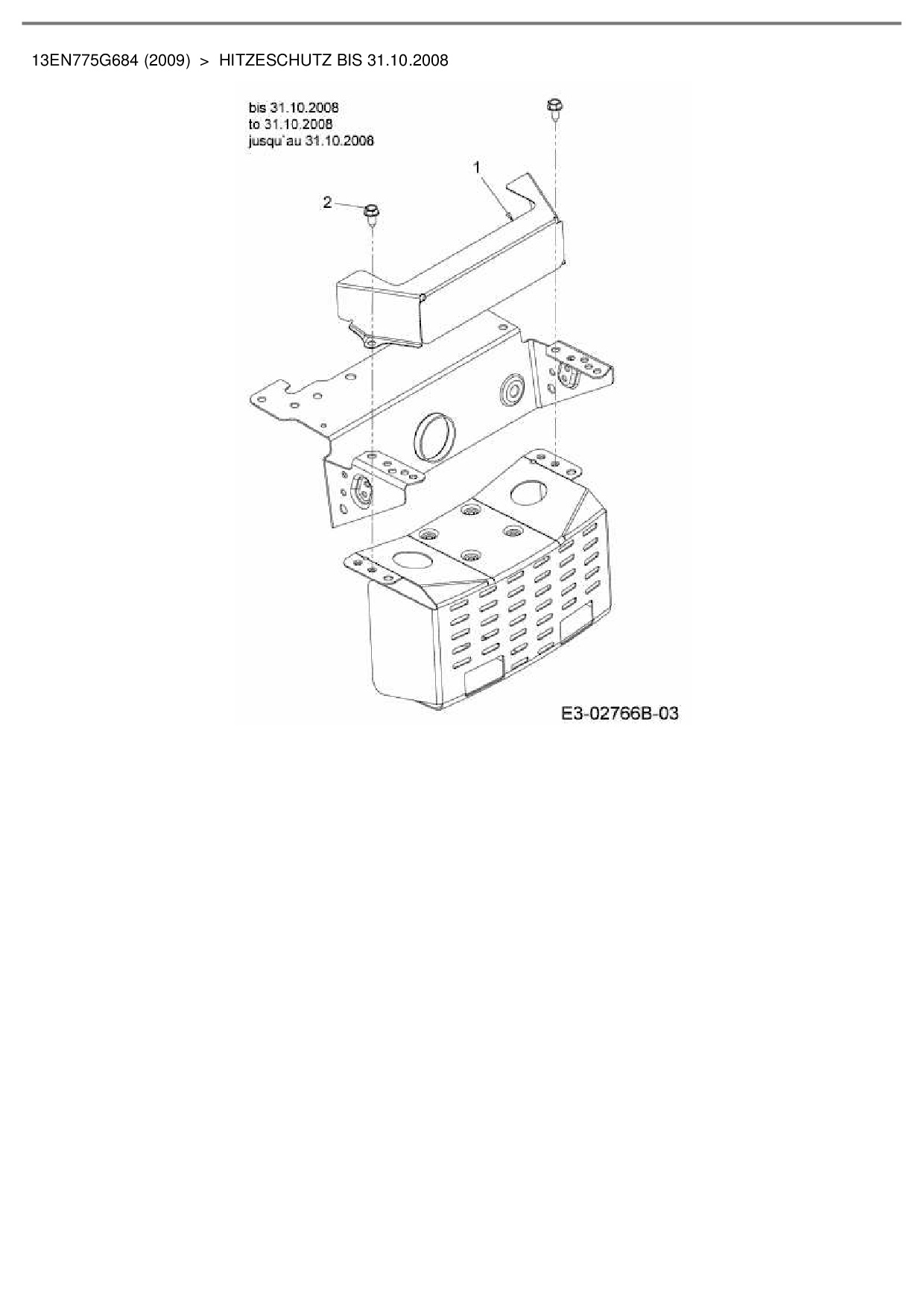 Ersatzteile für Rasentraktor Bolens BL 175/107 T aus der Zeichnung Hitzeschutz bis 31.10.2008: