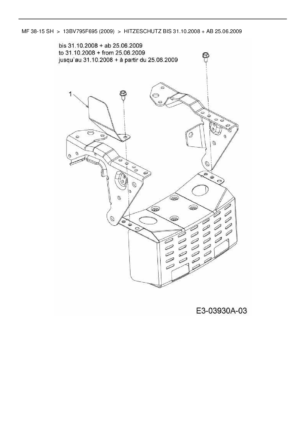 Ersatzteile für Rasentraktor Massey Ferguson MF 38-15 SH aus der Zeichnung Hitzeschutz bis 31.10.2008 + ab 25.06.2009: