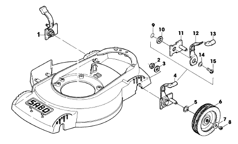 Zeichnung Sabo Rasenmäher Profi-Rasenmäher 43-S KAT EDV-NR.SA348 Höhenverstellung, Räder: