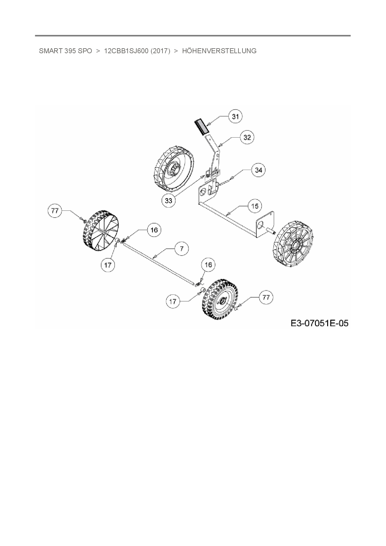 Ersatzteile für Motormäher mit Antrieb MTD Smart 395 SPO aus der Zeichnung Höhenverstellung: